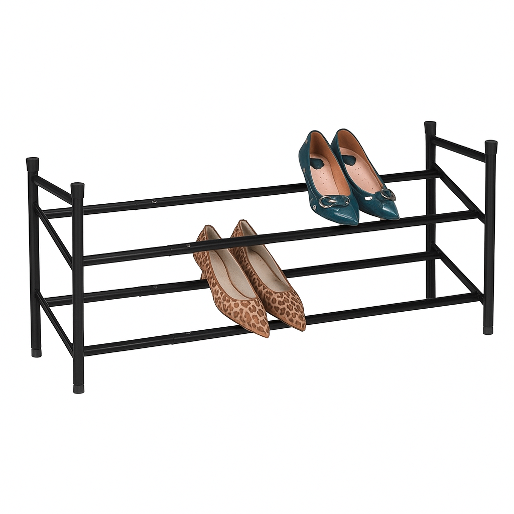 Díky 2 řadám pojme více párů bot, aniž by zabíral mnoho místa. Konstrukce z pochromovaného kovu je odolná, stabilní a zároveň lehká, což usnadňuje manipulaci i údržbu. Ideální do předsíní, šaten nebo pod věšák.