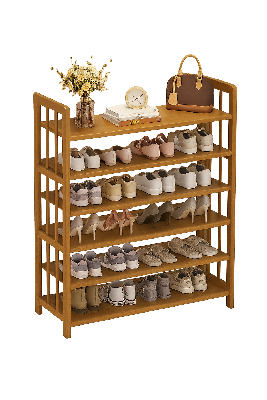 Tento samostatně stojící botník z přírodního bambusu nabízí 6 prostorných polic s celkovou nosností až 6 kg. Díky minimalistickému designu a odolné konstrukci se skvěle hodí do předsíně, ložnice i obývacího pokoje, kde poskytne praktický a stylový úložný prostor pro boty i doplňky.