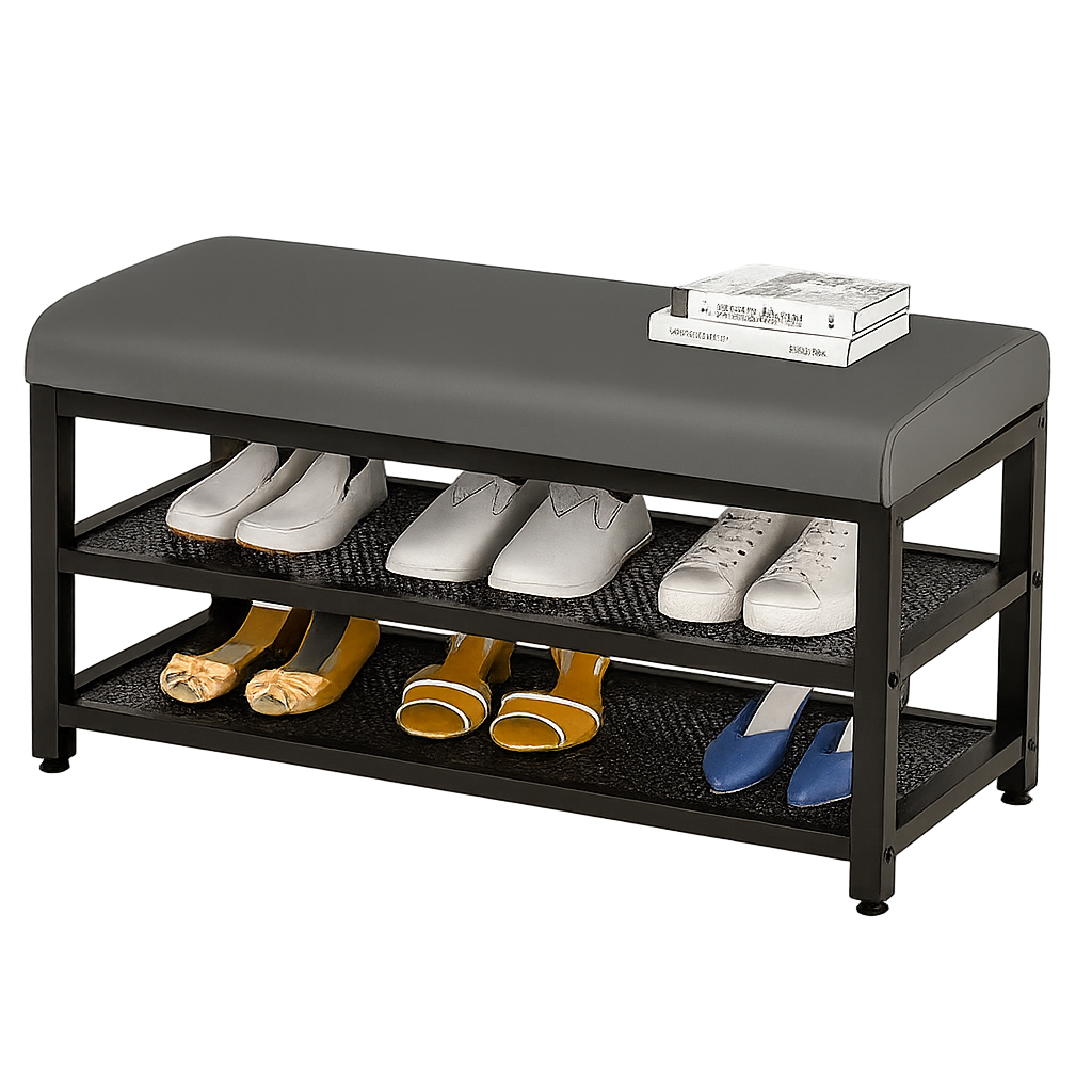 Moderní 3patrový botník s polstrovaným sedákem – funkční, odolný a stylový doplněk pro vaši domácnost