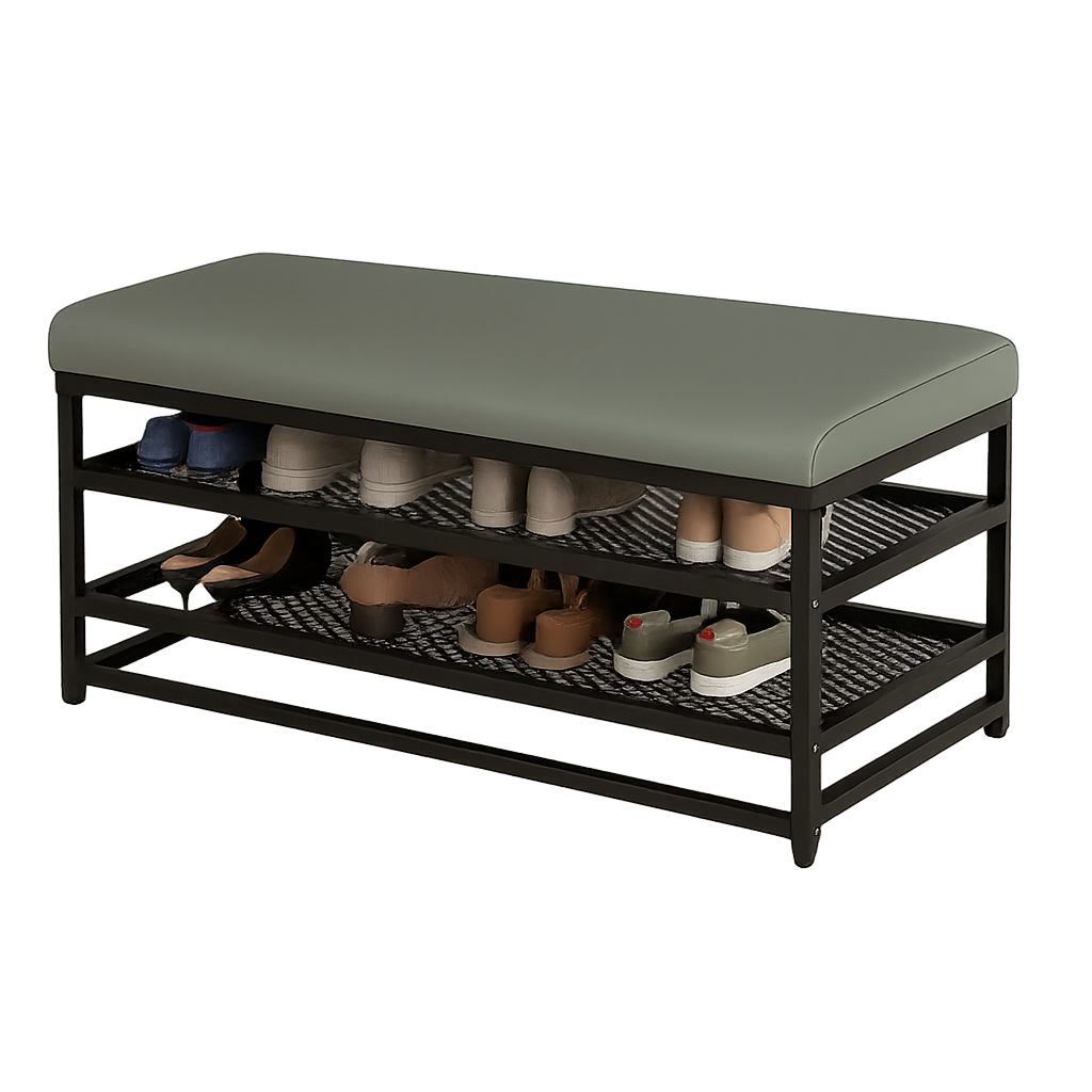 Moderní 3patrový botník s polstrovaným sedákem – funkční, odolný a stylový doplněk pro vaši domácnost