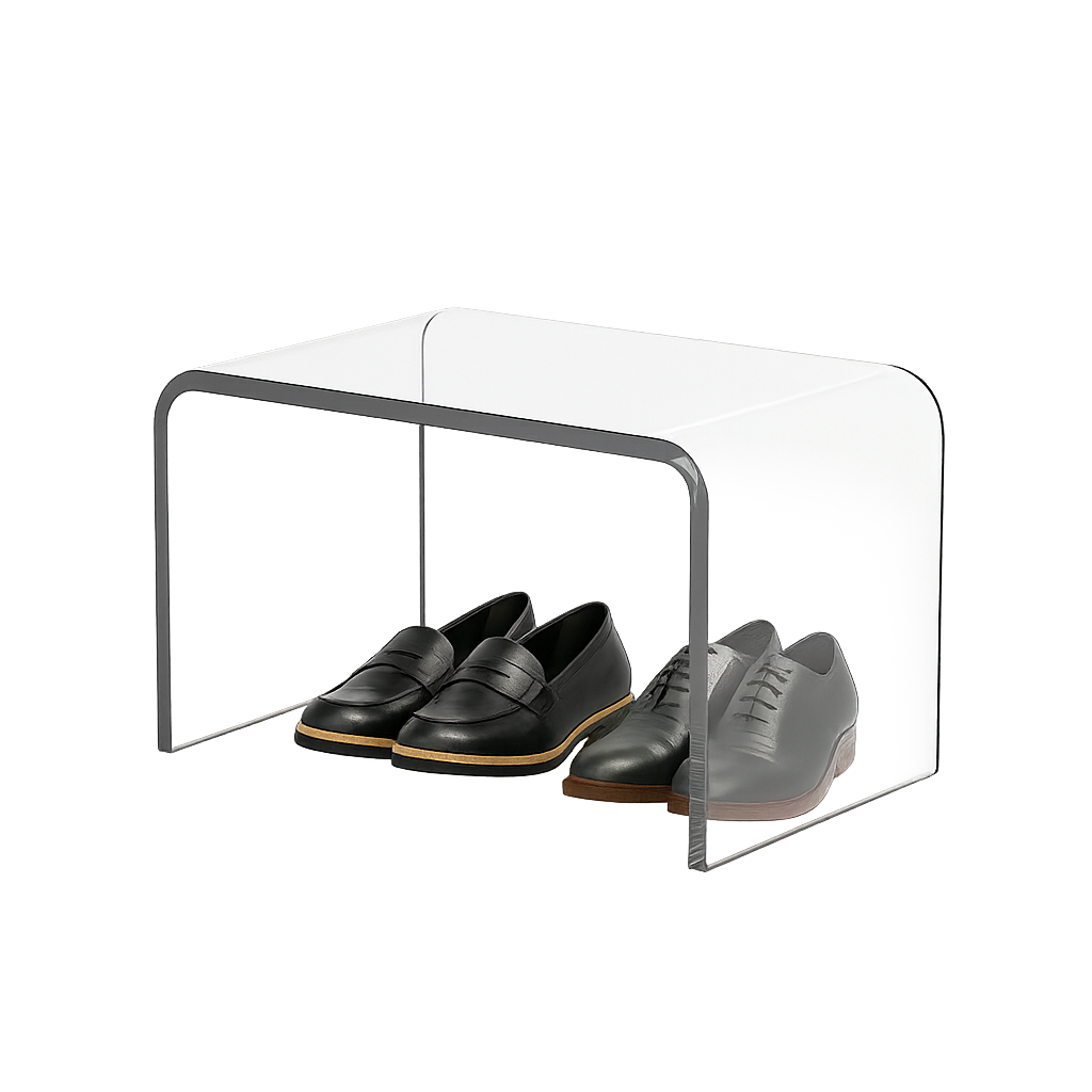 Tento vysokoprůhledný akrylový botník představuje dokonalou rovnováhu mezi moderní estetikou a funkčním designem. Slouží jako stylová lavička s opěrkami na ruce a zároveň jako úložný organizér pro boty či doplňky, ideální pro předsíň, ložnici nebo šatnu.