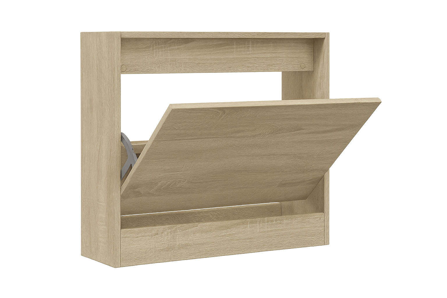 Dřevěný botník v dekoru dub sonoma je ideálním řešením pro ty, kdo hledají kombinaci praktického úložného prostoru, odolnosti a moderního minimalistického designu. Díky třem policím poskytuje dostatek místa pro boty, tašky nebo drobné doplňky, přičemž nezabírá mnoho místa a působí elegantně v každém interiéru.