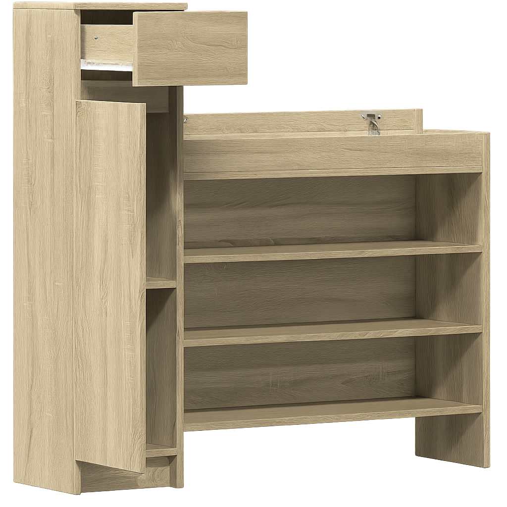 Praktický botník z kvalitní dřevotřísky v dekoru dub sonoma je skvělým řešením pro uložení bot i drobných doplňků. Díky rozměrům 100 × 28 × 100 cm se hodí i do menších předsíní, kde šetří místo a zároveň působí moderně a elegantně.