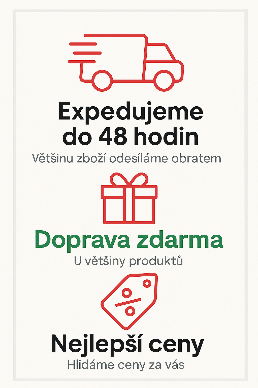 🟢 „Rychle u vás. Kvalitně u nás.“„Objednávka dnes, u vás zítra – a když něco nesedí, výměna je hračka.“