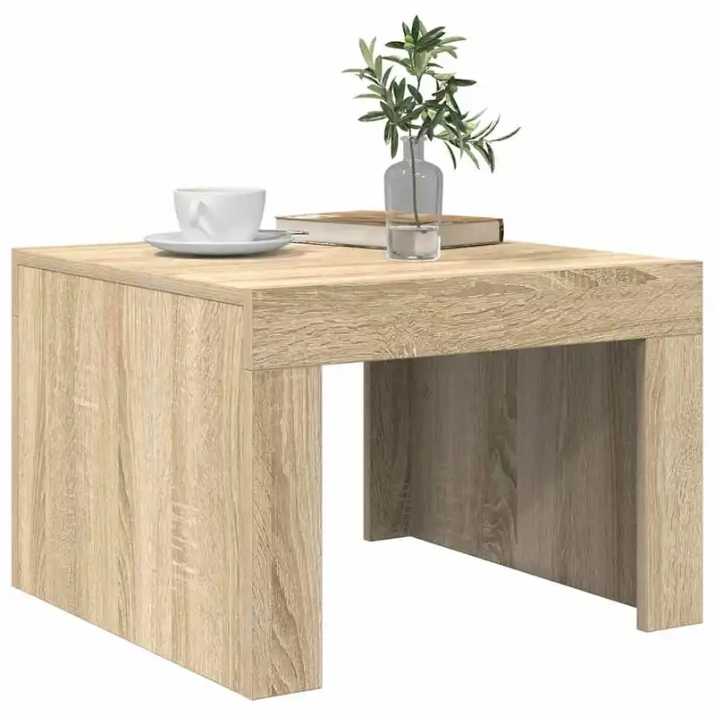 Tento konferenční stolek z kompozitního dřeva v elegantním dekoru dub Sonoma spojuje nadčasový design s praktičností a pevnou konstrukcí. Jeho minimalistický styl se snadno kombinuje s moderním i klasickým interiérem a díky kompaktním rozměrům 50 × 50 × 35 cm se perfektně hodí i do menších prostor.