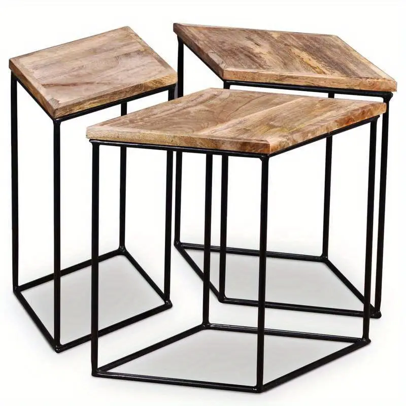Konferenční stolek, sada 3 ks, kov, manganové dřevo, SUDBURYskladem (ext.) 8 ks2 450 Kč/ ks2 025 Kč bez DPH