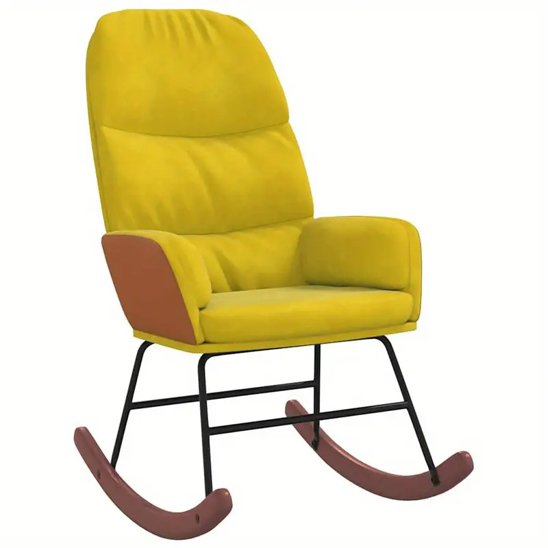 Relaxační houpací křeslo v hořčicové barvě spojuje elegantní design, pohodlí a odolnost. Pevná a stabilní konstrukce zajišťuje dlouhou životnost, zatímco jemný povrch je příjemný na dotek a dodává interiéru nádech luxusu. Díky své univerzálnosti se křeslo skvěle hodí jak do obývacího pokoje, ložnice, tak i do kanceláře či odpočinkové místnosti.