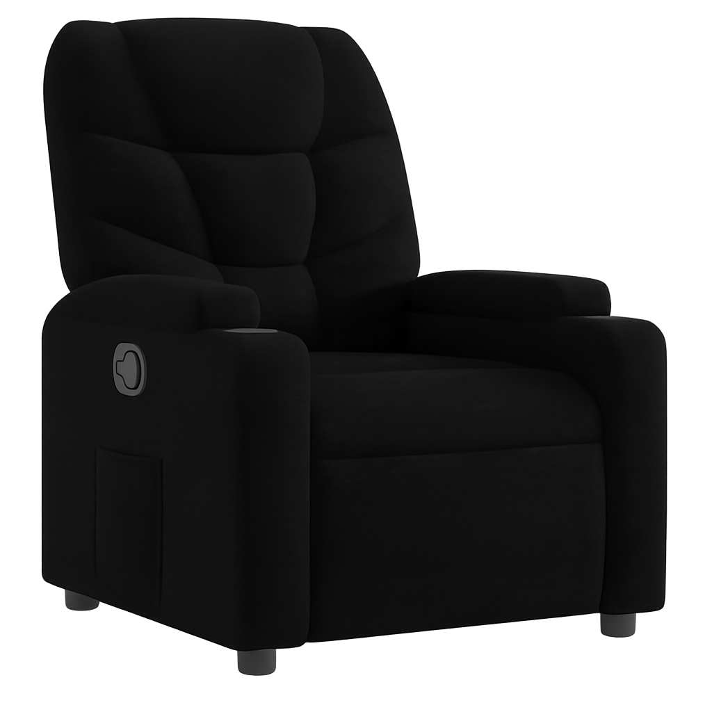 Stylové relaxační křeslo v černé tkanině nabízí spojení moderního vzhledu, pohodlí a funkčnosti. Díky nastavitelnému opěradlu si snadno najdete ideální polohu pro odpočinek, čtení nebo sledování televize.