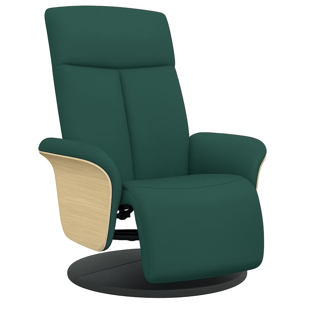 Pohodlné polohovací křeslo s podložkou na nohy v elegantní tmavě zelené barvě je ideálním společníkem pro odpočinek po dlouhém dni. Je vybaveno manuální funkcí sklápění, díky které si můžete nastavit polohu opěradla a podnožky mezi 105–125°, a vytvořit si tak ideální podmínky pro relaxaci.