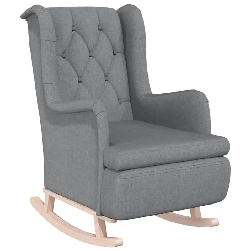 Křeslo ušák, relaxační, houpací, nohy světlé, látka šedá, HARPER