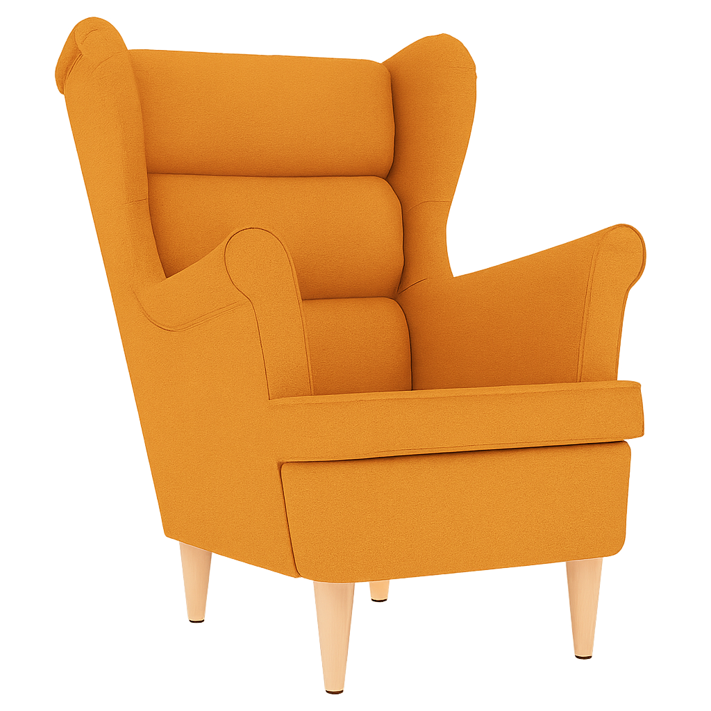 Křeslo ušák, relaxační, nohy světlé, látka oranžová, BELEKskladem (ext.) 7 ks5 990 Kč/ ks4 950 Kč bez DPH