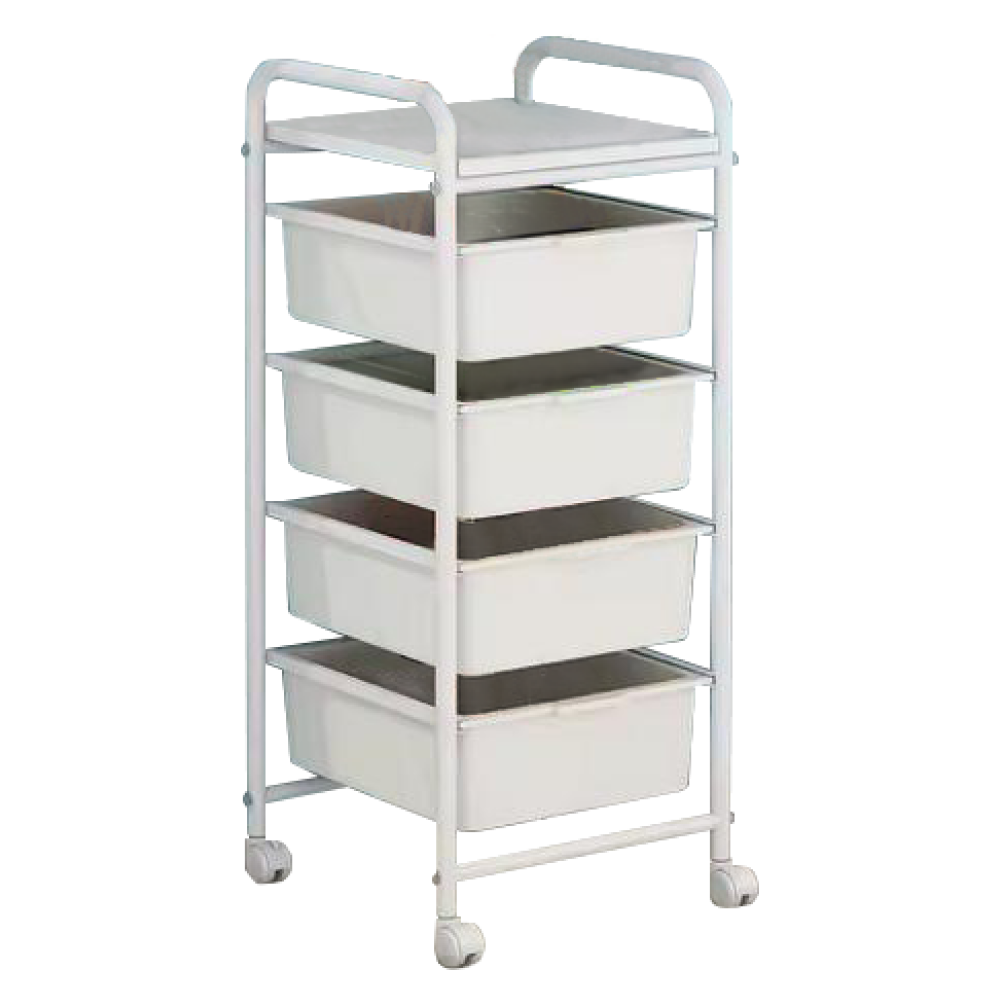 Regál SUFIK je chytré a stylové řešení pro přehledné uložení věcí v jakékoli místnosti. Čtyři plastové boxy s perforací zajišťují cirkulaci vzduchu, což oceníte zejména v koupelně nebo kuchyni. Kovová konstrukce, MDF police a otočná kolečka (dvě s brzdami) zajišťují stabilitu i snadnou manipulaci. Vhodný pro uložení kosmetiky, čistících prostředků, kancelářských pomůcek i dětských hraček.
