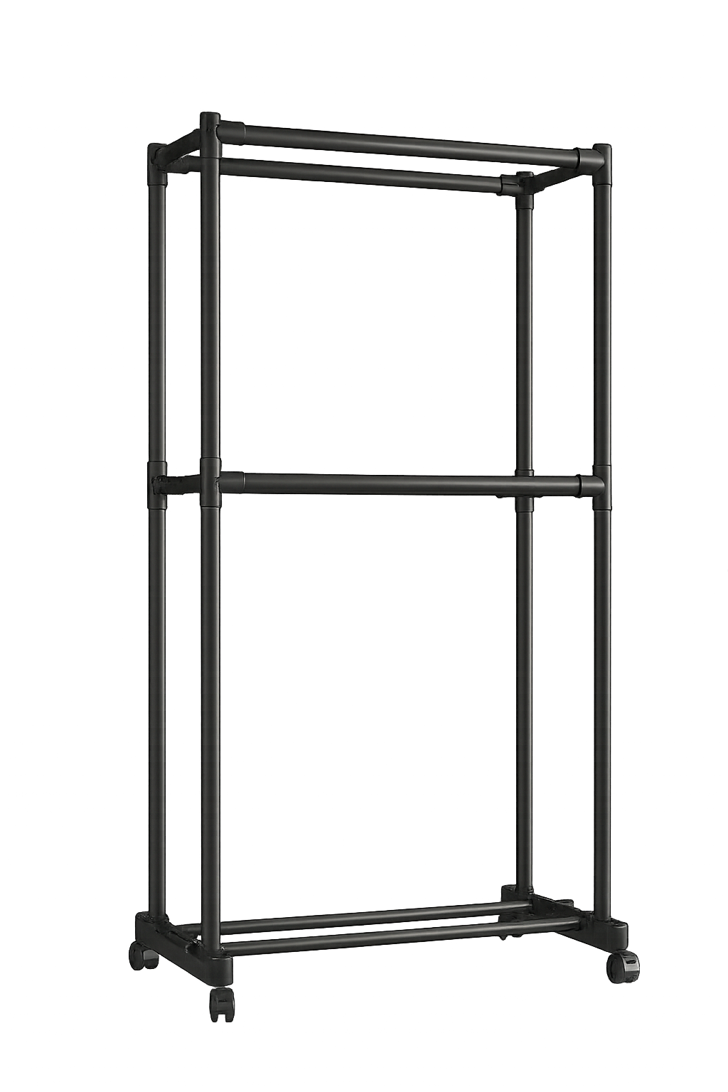 Tento kovový věšák na oblečení je ideální volbou pro ty, kteří hledají praktické a stylové řešení úložného prostoru. Díky dvojitému vrstvení nabízí dostatek místa pro kabáty, bundy i doplňky. Kolečka umožňují snadný přesun, zatímco odolný černý povrch působí elegantně a minimalisticky. Úsporný design šetří prostor a snadná montáž i demontáž z něj činí flexibilního pomocníka do každé domácnosti.