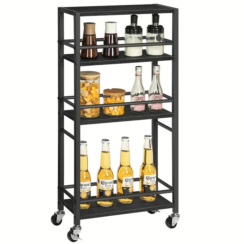 Tento moderní 4patrový kuchyňský vozík s kolečky představuje dokonalou kombinaci praktického úložného prostoru, mobility a elegantního designu. Ideální jako barový vozík, servírovací stanice nebo odkládací stolek, který doplní každý interiér – od moderního po rustikální.