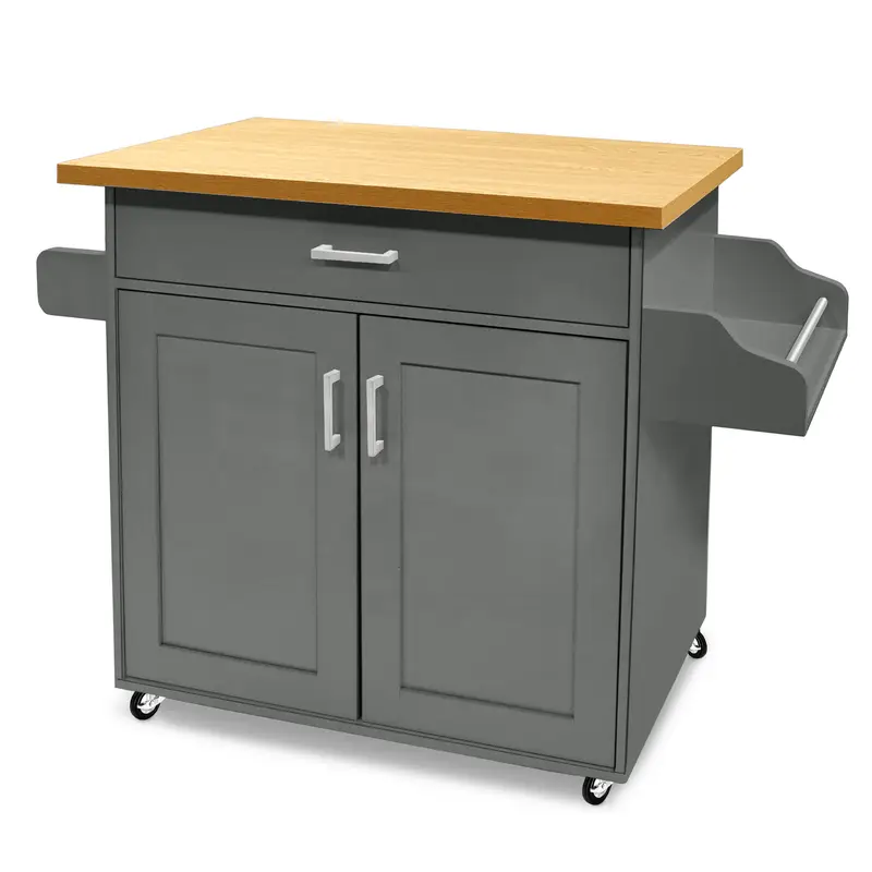 Tento kovový kuchyňský vozík s koly nabízí praktické řešení pro organizaci kuchyně i servírování jídla. Je vybaven nastavitelnými policemi, úložnými dveřmi, kořenkovým regálem a držákem na ručníky, což z něj činí všestranný doplněk pro každou domácnost.