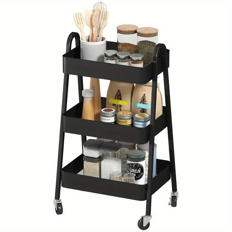Tento robustní 3patrový vozík s kolečky a brzdou je ideálním pomocníkem pro organizaci, podávání i skladování. Díky pevné kovové konstrukci je mimořádně odolný a stabilní, zatímco moderní černé provedení dodává interiéru stylový a profesionální vzhled.
