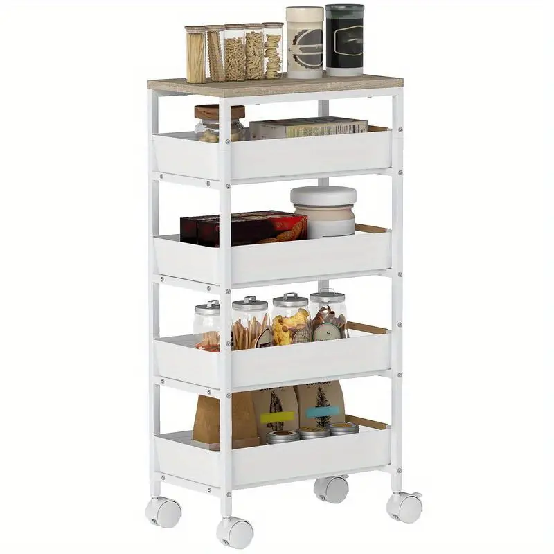 Je vybaven 4 hladce otočnými kolečky, která umožňují snadné přemisťování po kuchyni, obývacím pokoji nebo kanceláři. Pět úložných úrovní poskytuje dostatek prostoru pro nádobí, potraviny, koření, knihy nebo dekorace, přičemž vertikální konstrukce šetří místo.