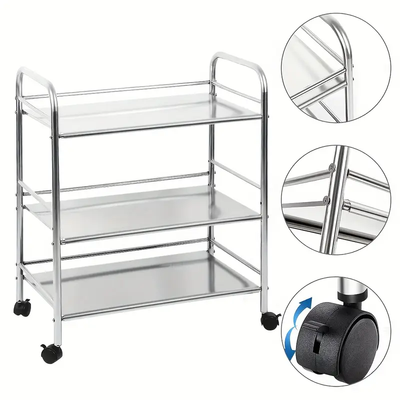 Tento kvalitní servisní vozík z nerezové oceli je navržen pro maximální efektivitu, mobilitu a odolnost. Díky třem úložným úrovním poskytuje dostatek prostoru pro servírování jídel, přenášení nádobí nebo skladování kuchyňských potřeb. Je ideální pro restaurace, hotely, jídelny i domácí kuchyně.