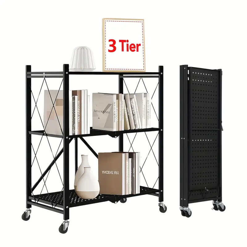 3patrový skládací kovový vozík s kolečky – okamžitá použitelnost, vysoká kapacita a elegantní design