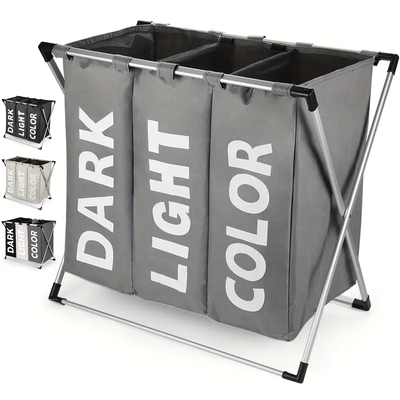Chytré řešení pro všechny, kteří chtějí mít prádlo vždy perfektně roztříděné a domácnost v pořádku. Díky třem prostorným přihrádkám snadno oddělíte světlé, tmavé a barevné prádlo už při ukládání.