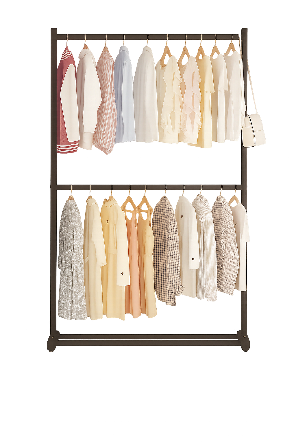 Univerzální vícevrstvý věšák na oblečení je praktickým řešením pro efektivní uskladnění oděvů a doplňků i v menších prostorech. Díky víceúrovňovému provedení nabízí dostatek místa nejen na zavěšení oblečení, ale také na uložení bot, tašek či úložných boxů.