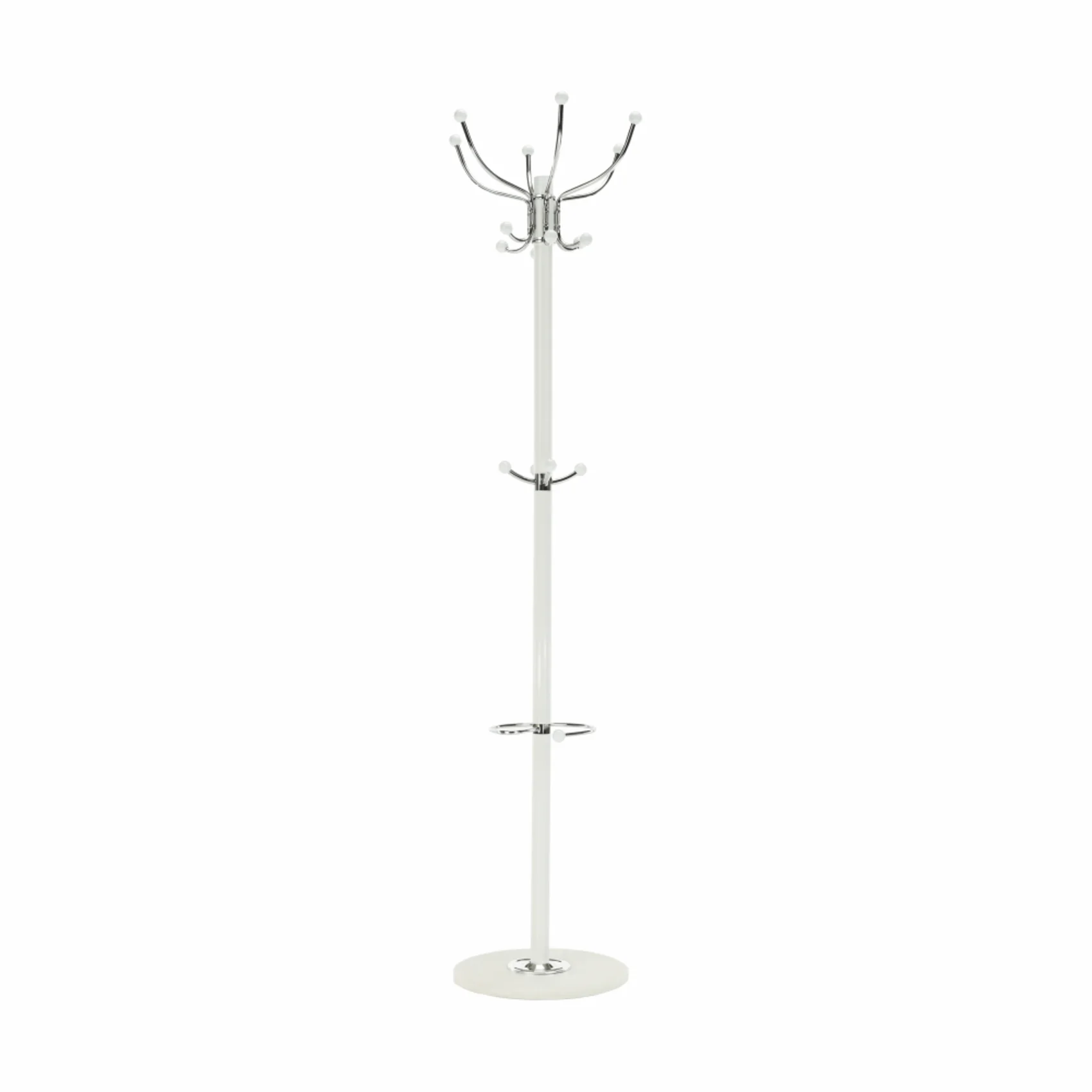 Věšák je vyroben z pevného bílého kovu, který dodává interiéru svěží a čistý vzhled. Stabilitu zajišťuje kvalitní mramorová základna, která nejen dobře vypadá, ale také zaručuje dlouhou životnost a pevné ukotvení. Díky své konstrukci je JIMY NEW ideální pro každodenní používání v předsíni, ložnici i šatně.