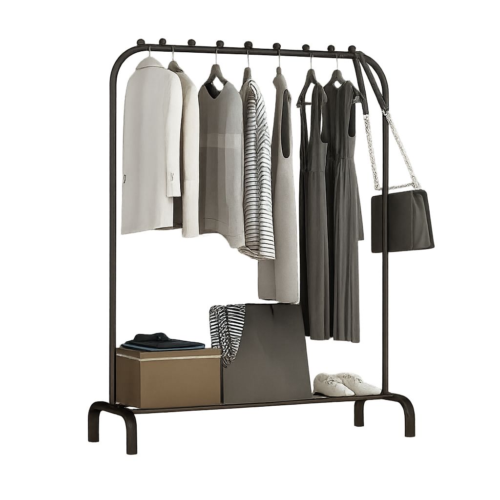 Dodejte své ložnici, předsíni nebo šatně styl i praktický úložný prostor s tímto elegantním volně stojícím věšákem na oblečení. Minimalistický design v černé barvě doplňuje robustní kovová konstrukce, která nabízí dostatek místa pro zavěšení každodenního i sezónního oblečení.